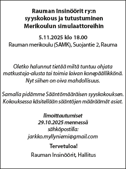 Oletko halunnut tietää miltä tuntuu ohjata matkustaja-alusta tai toimia laivan konepäällikkönä. Nyt siihen on oiva mahdollisuus. Samalla pidämme Sääntömääräisen syyskokouksen. Kokouksessa käsitellään…