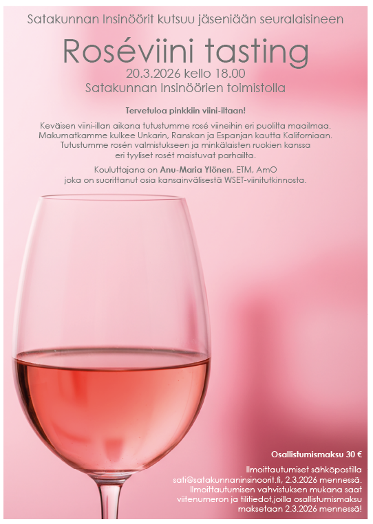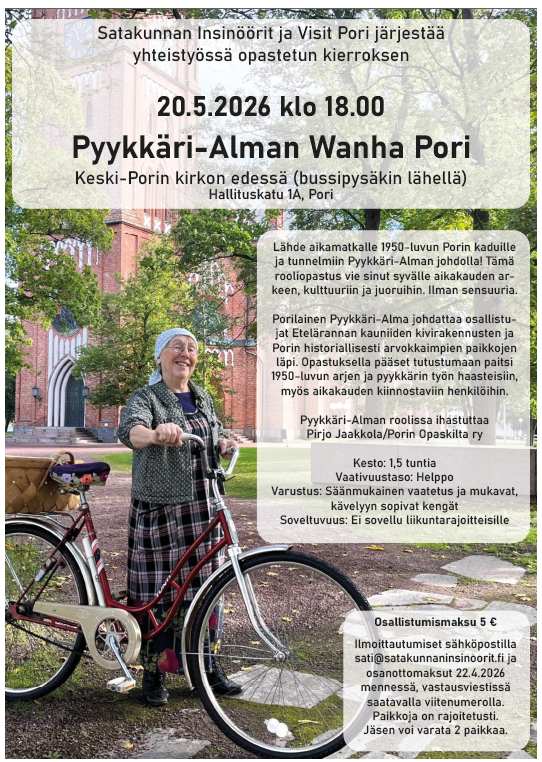 Liput 45 € Varaukset ja maksut 2.2.2026 mennessä sähköpostilla, sati@satakunnaninsinoorit.fi vahvistusähköpostissa tulevalle tilille, annetuilla viitenumeroilla! Lippuja voi noutaa SATIn toimistolta…