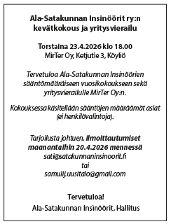 Tervetuloa Ala-Satakunnan Insinöörien sääntömääräiseen vuosikokoukseen sekä yritysvierailulle MirTer Oy:n. Kokouksessa käsitellään sääntöjen määräämät asiat (ei henkilövalintoja). Tarjoilusta johtuen,…